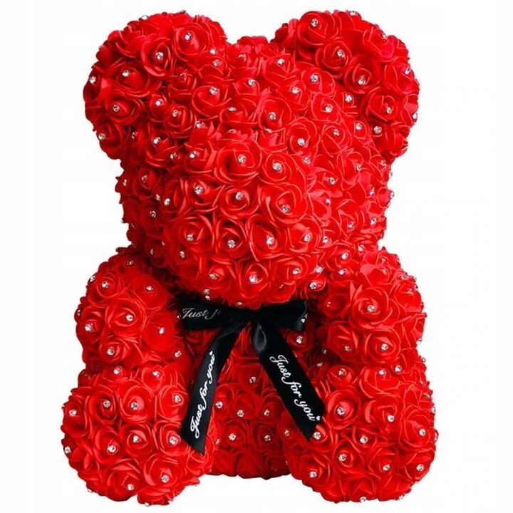 Wyjątkowa kompozycja składająca się z około 600 delikatnych, sztucznych płatków róż tworzy subtelną, a zarazem niezwykle efektowną formę pluszowego misia. To luksusowa, trwała alternatywa dla klasycznego bukietu – symbol uczuć, który nie więdnie, nie traci intensywności koloru i pozostaje piękną pamiątką przez wiele lat.